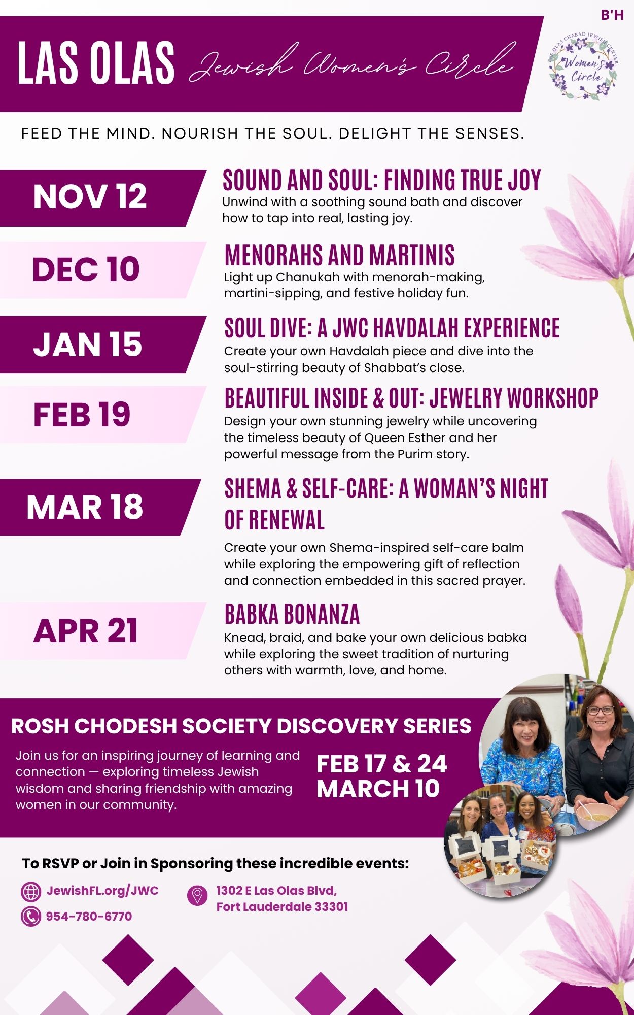 The Jewish Women’s Circle brings together Jewish women of all ages and backgrounds to learn, laugh, experience and rejuvenate the mind, body and soul. Join us for exciting, intriguing and just plain enjoyable evenings throughout the year!